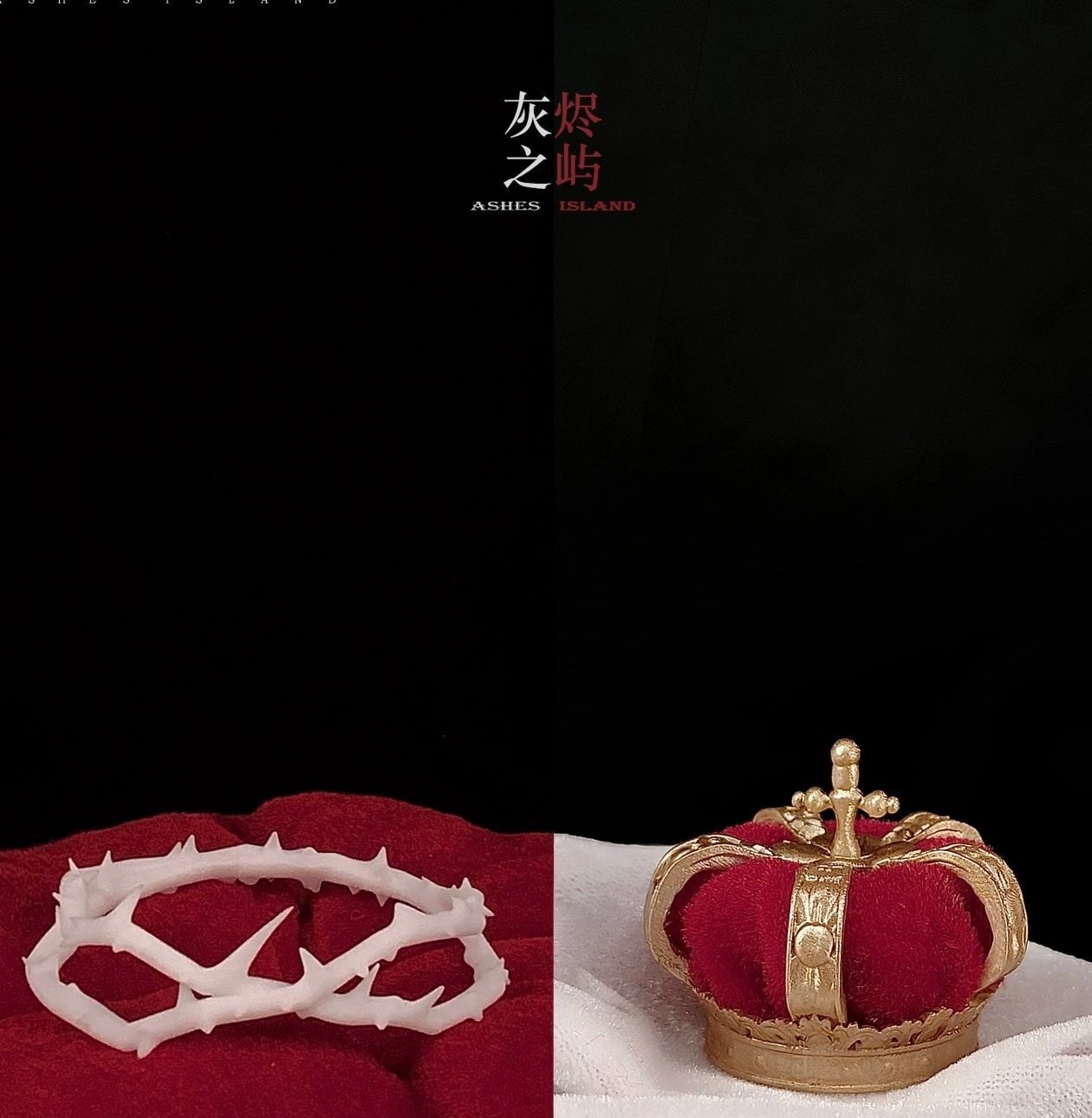 トップス、上着、スカート、ソックス、太ももアクセサリー、ロングリボン、金属製ブローチ、金属製王冠、羽根大・小、茨の王冠